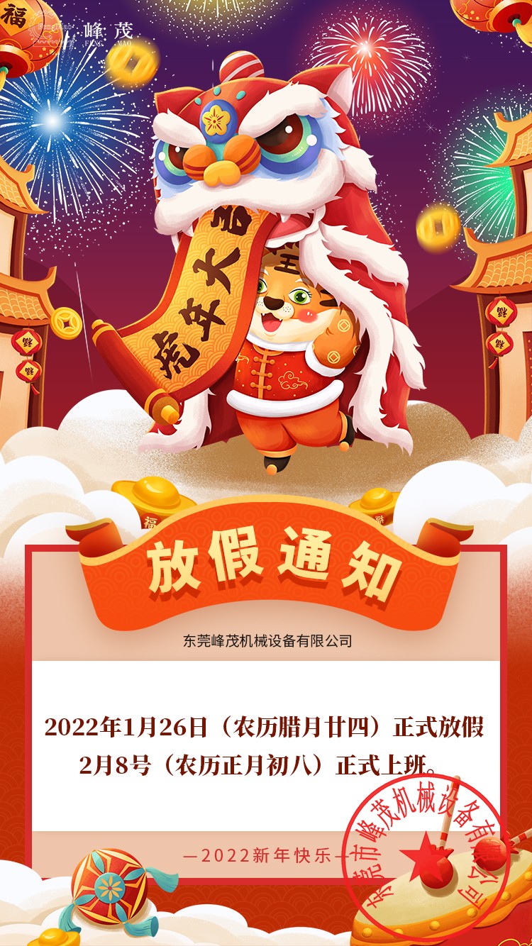 2022年1月26日(農曆臘月廿四)正式放假!2月8号(農曆正月初八)正式上班。